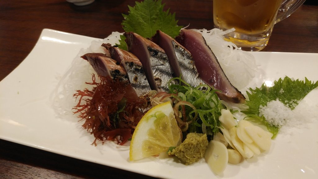 ニンニクの香り、藁焼きの香ばしさが食欲をそそり、新鮮で色鮮やかな鰹はとても美味しかった!
