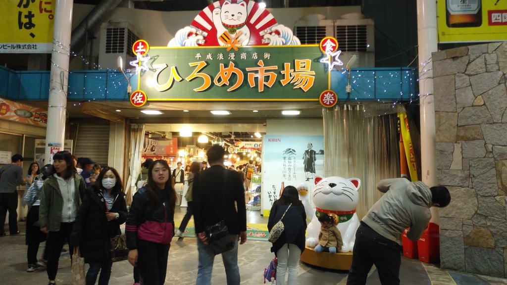 荷物をまとめて落ち着いたところCB250R乗りの提案で、高知市内の”ひろめ市場”で夕飯を食べに向かいました。