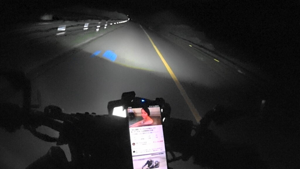 やってられない!っということでYouTubeの温泉女子という素人が温泉をレポートする動画の音声を聴きながら(運転中は動画は見ない!)、怖さを緩和してみました。